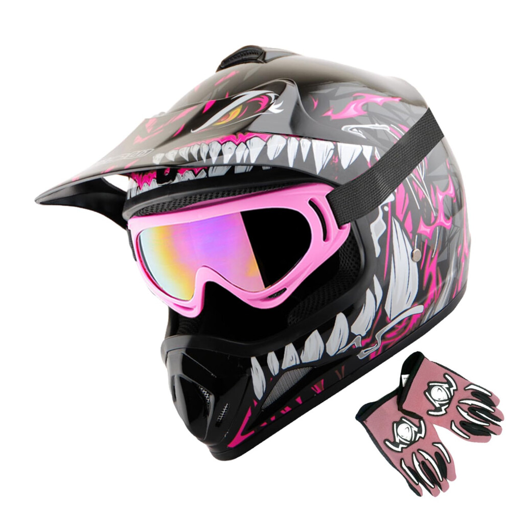 WOW Youth Kids Motocross BMX MX ATV Dirt Bike Helmet Dragon Pink gogg