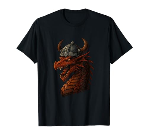 Nordic Viking Dragon in Helmet Mythical Norse Epic Vintage T-Shirt