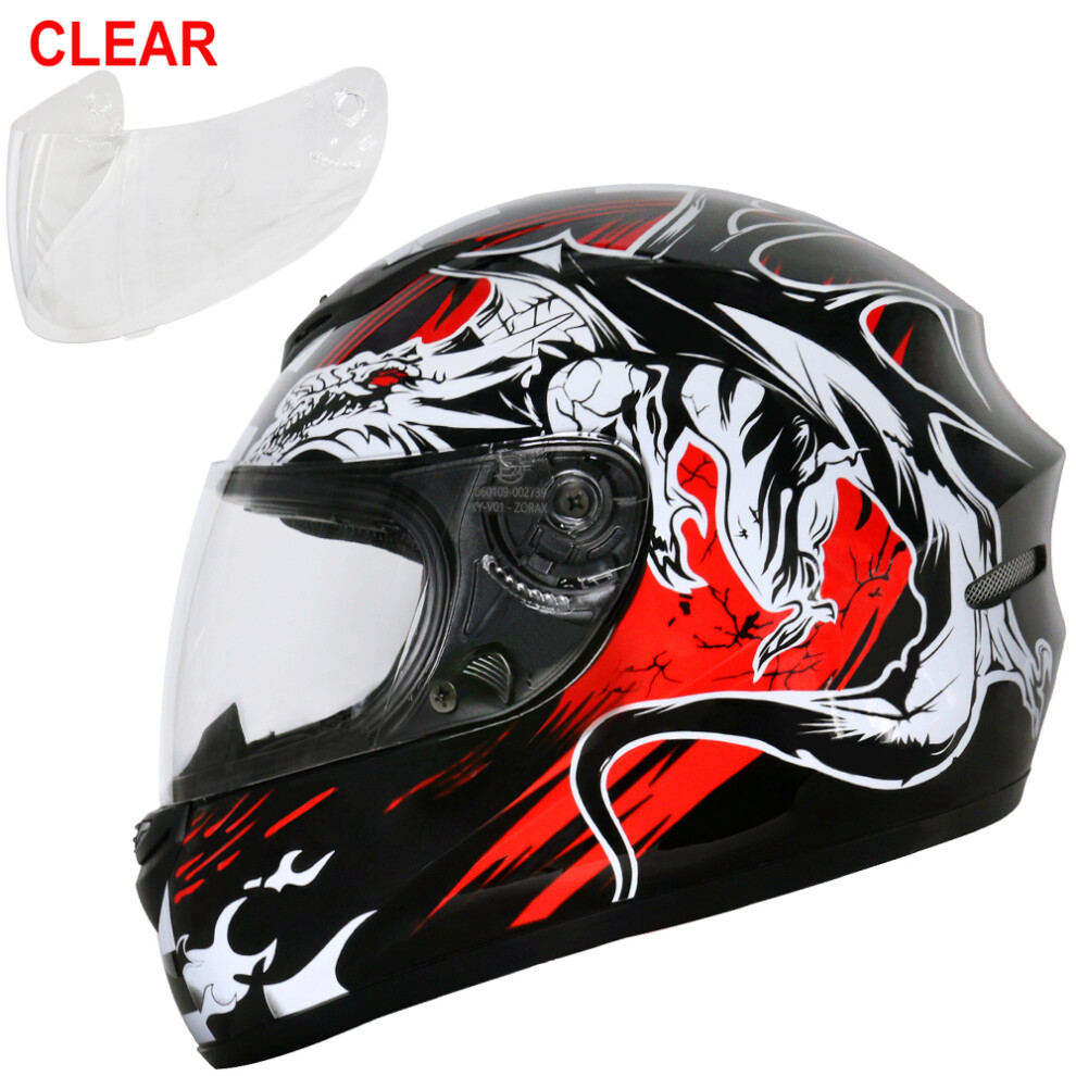 (Black Dragon + Clear Visor, XL) ZORAX ZOR-819 Bike Full Face Motorcycle Helmet Motorbike Crash Helmet On Road + Optional Visor