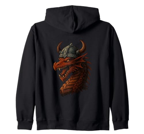 Nordic Viking Dragon in Helmet Mythical Norse Epic Vintage Zip Hoodie