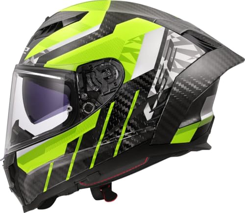 LS2 Dragon FF807. Motorcycle Helmet. Full Face. Full Carbon. Dark Visor, Pinlock and Carrying Bag Included. TRAX Gloss High Viz Yellow. XXL