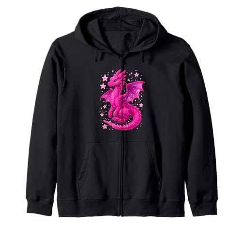 Pink Fantasy Dragon With Stars Zip Hoodie