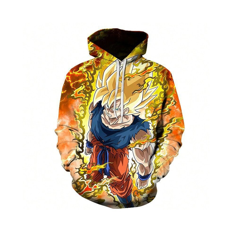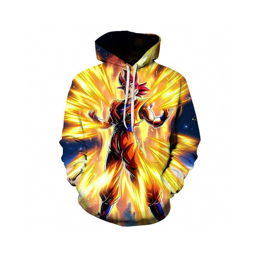 (WS15053, XXL) Dragon Ball Saiyan God 3D Hooded Cartoon Anime Character Sweatshirt