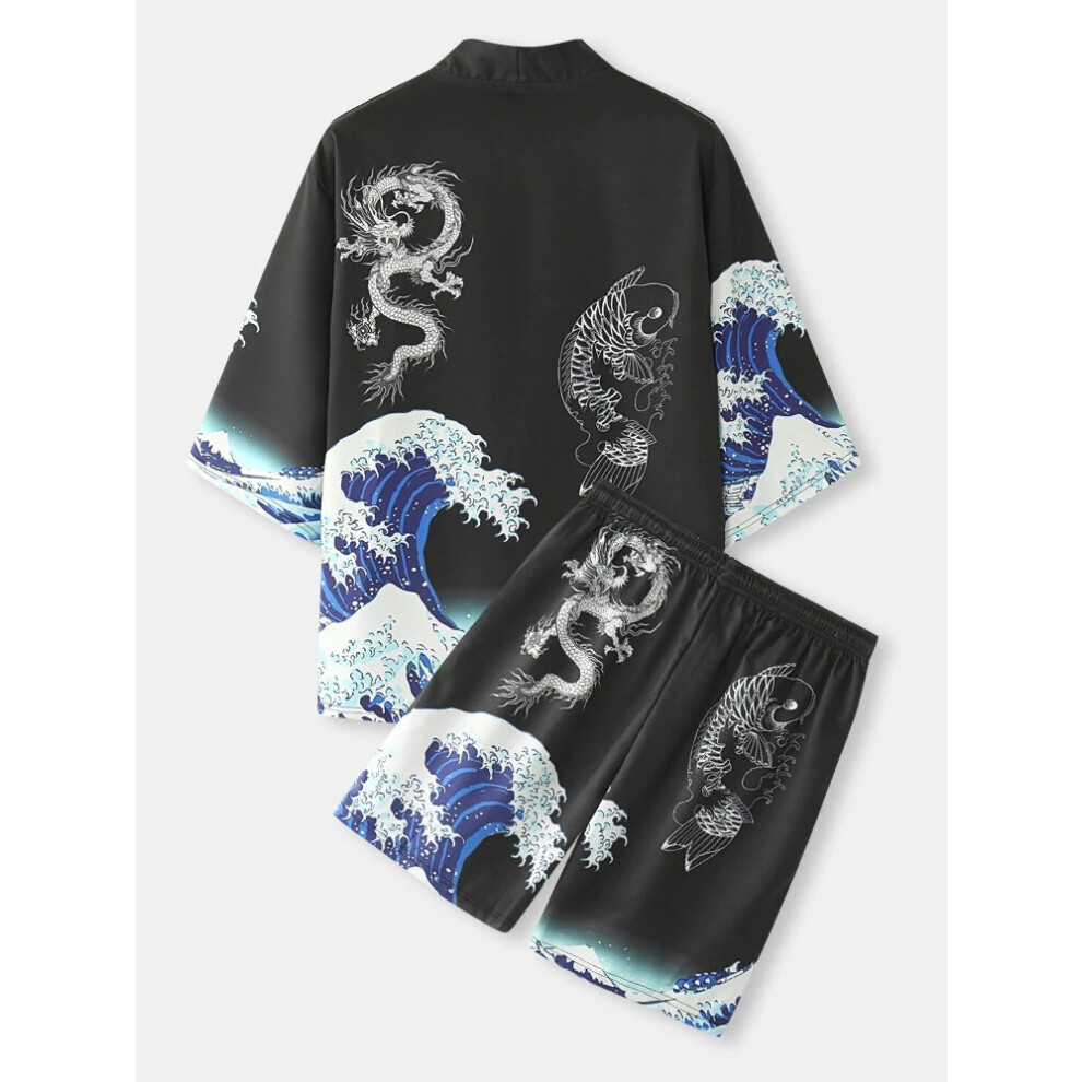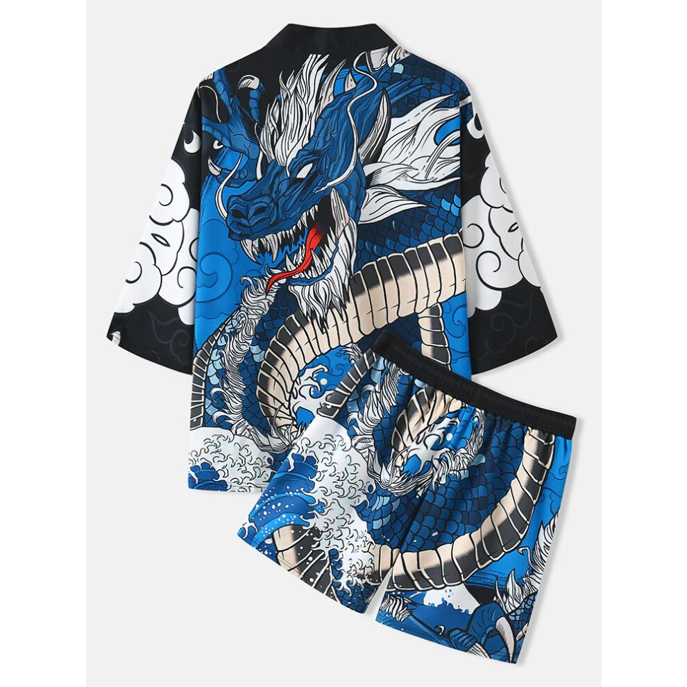 (Blue Dragon, XXL) Anime Peripheral Kimono Jacket Set Bathrobe 2D Cloak Pajamas