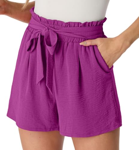 PrinStory Women's Summer Shorts With Pockets Lightweight Wide Leg Ladies Shorts Casual Elastic High Waisted Women's Pants (Dragon Fruit Red, XXL)