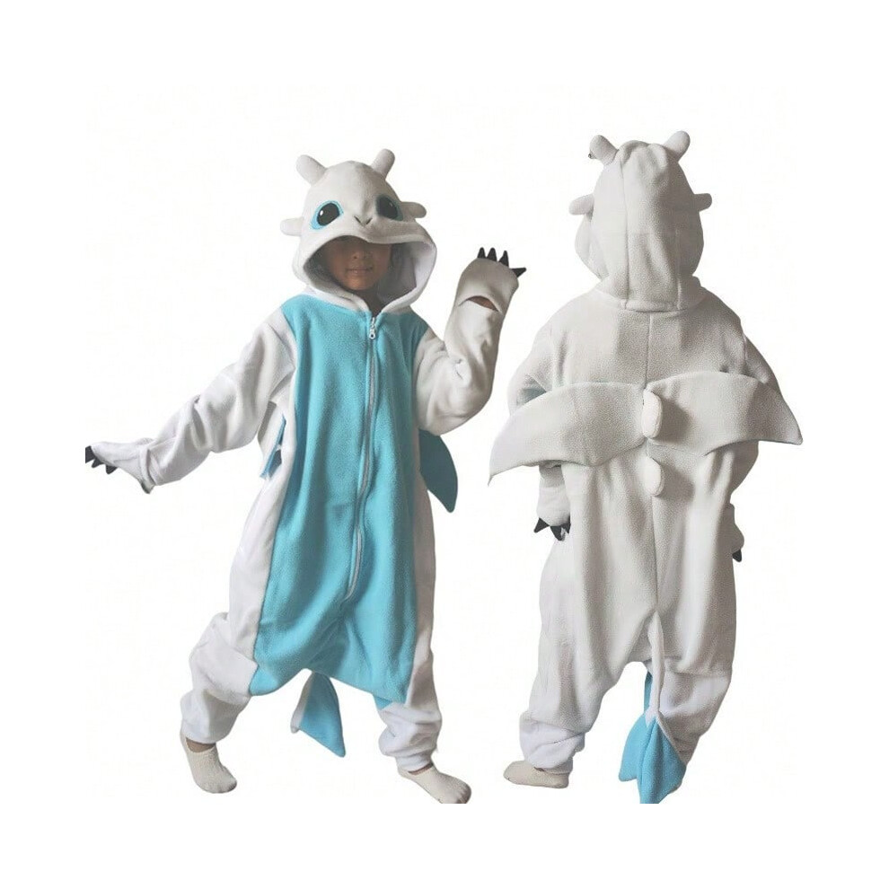 (White Dragon, XXL) Pokémon Black Dragon and White Dragon Children's Cartoon One-Piece Pajamas Cartoon Polar Fleece Halloween Costume