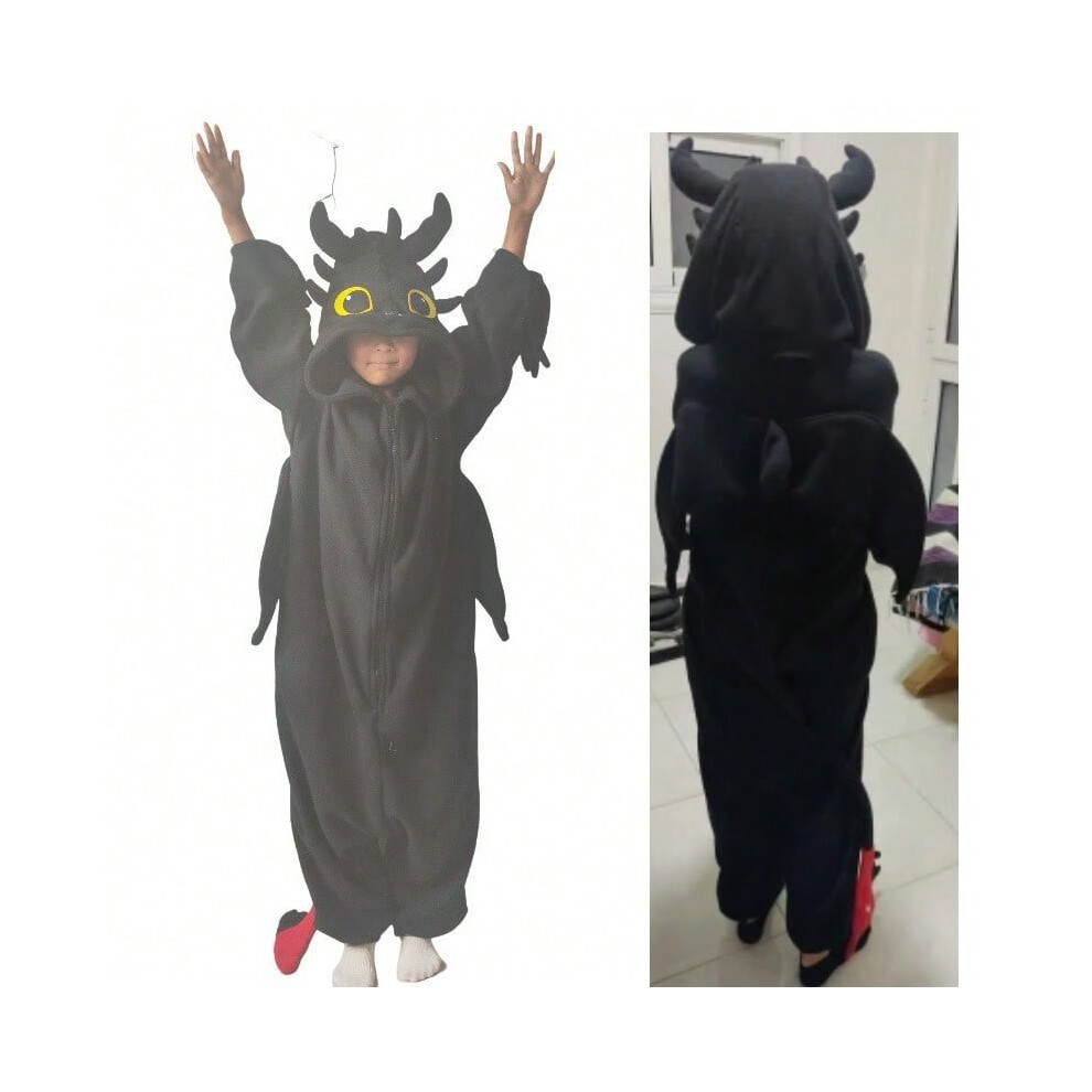 (One-eyed monster/One-eyed dragon, XXL) Pokémon Black Dragon and White Dragon Children's Cartoon One-Piece Pajamas Cartoon Polar Fleece Halloween Cost