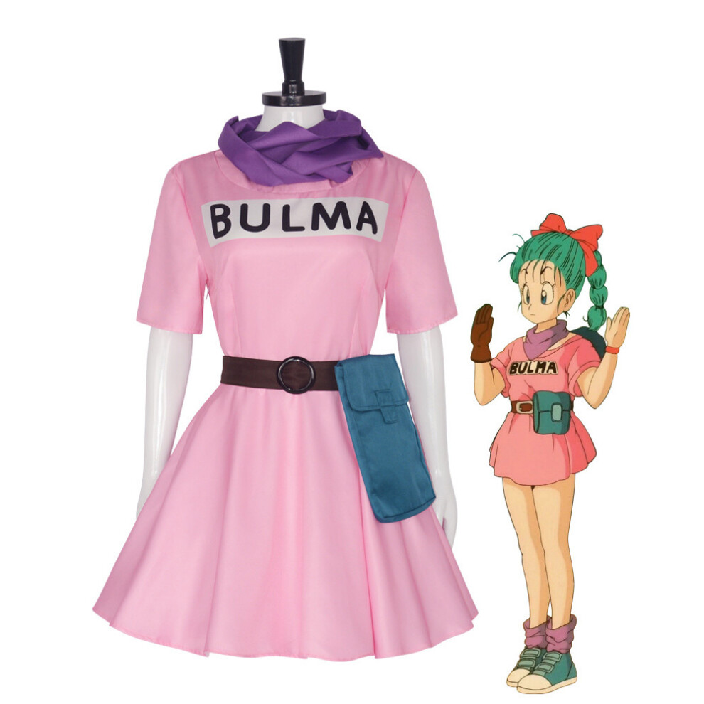 (XXL) Dragon Ball Z Bulma Cosplay Costume Party Fancy Dress Set for Girls Womens