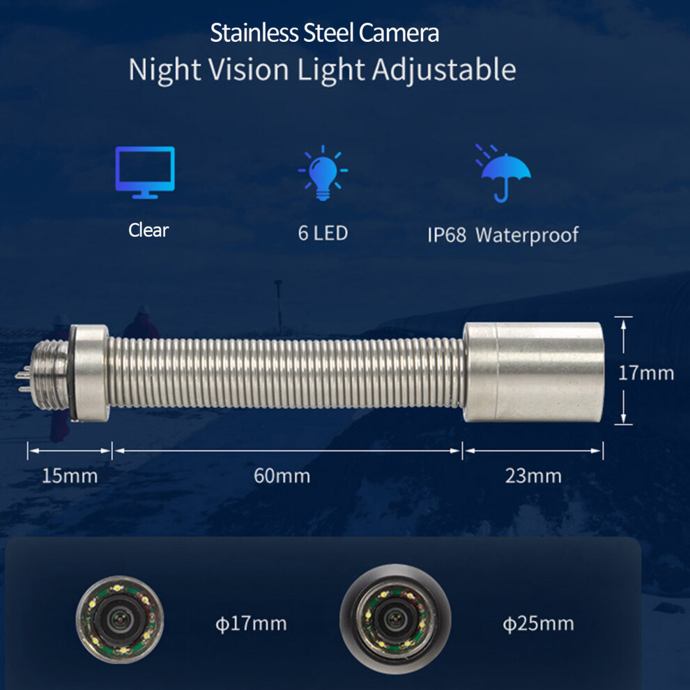Drain Inspection Camera Head Replacement, 304 Stainless Steel Construction Offers Superior Durability