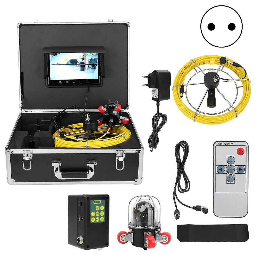 (As show, One size) 30M 9in Pipe Inspection Video Camera Drain Sewer Pipeline Industrial Endoscope Support Rotating CameraEU Plug 100240V