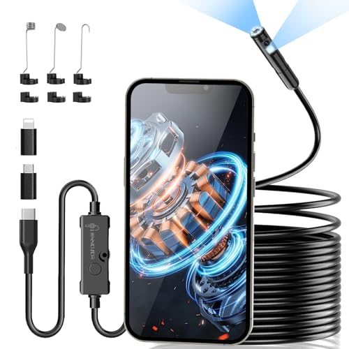 Ennovor Endoscope Inspection Camera, 1920P Flexible Rigid Endoscope, 8 LED Borescope, USB No WiFi Inspection Camera, IP67 Waterproof Tube Sink Drain Cameras, for Android iOS iPhone iPad Samsung,16.5FT