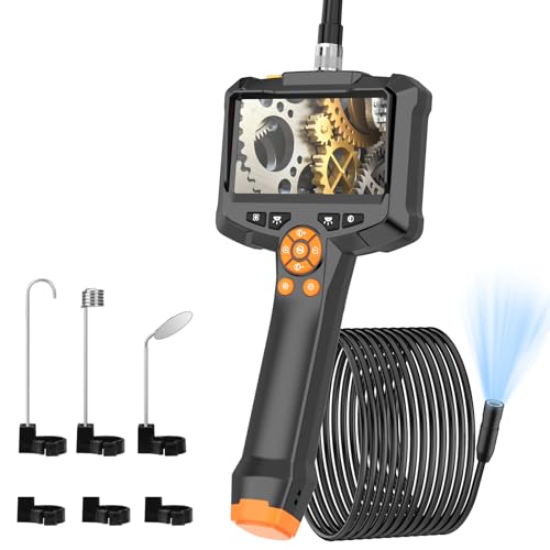 DEPSTECH Dual Lens Endoscope Inspection Camera, HD Borescope with Light, 4.3" IPS Screen, IP67 Waterproof Drain Snake Camera, 5m Semi-Rigid Cable for Car Wall Plumbing & HVAC