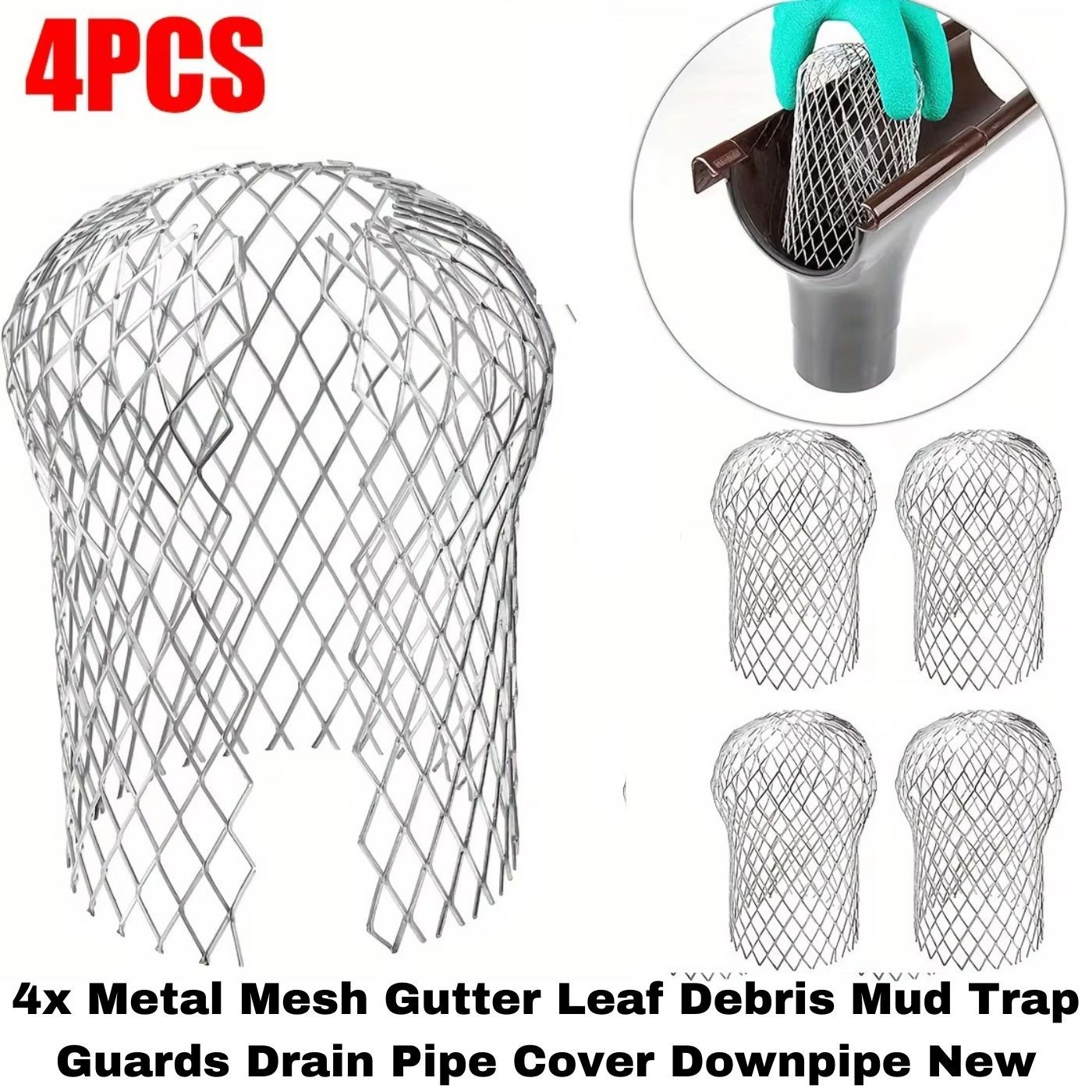 4x Metal Mesh Gutter Leaf Debris Mud Trap Guards Drain Pipe Cover Downpipe New