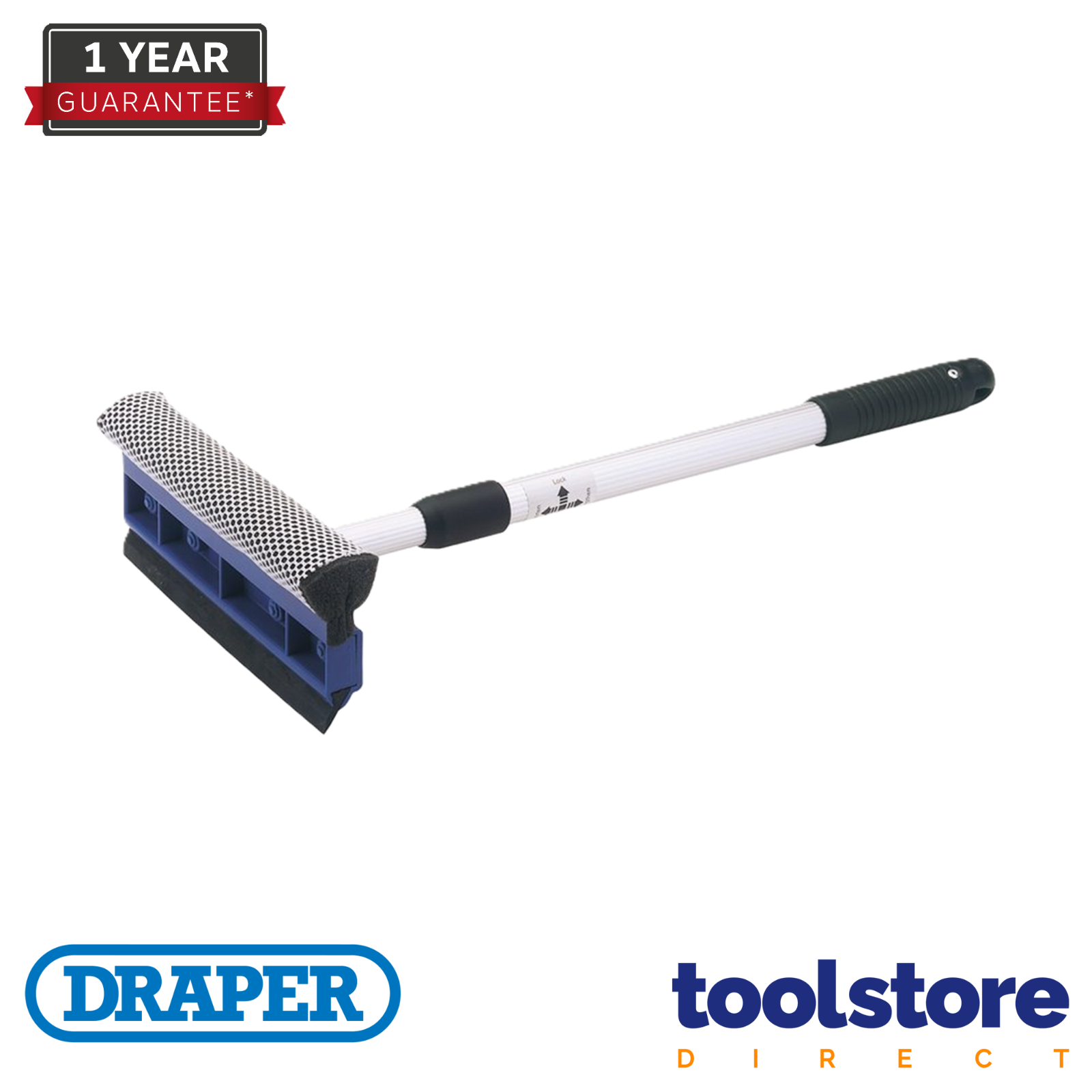 Draper Telescopic Window Cleaning Equipment | 46.55 to 73.5cm Extendable Squeegee with Sponge | 200mm Rubber Blade | Twist and Lock Handle Window