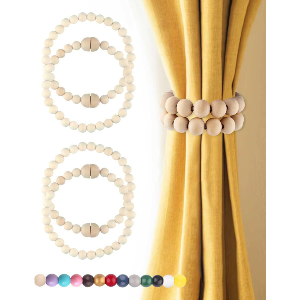 Magnetic Curtain Tiebacks 4 Pack â Strong Magnet Closure, Boho Wooden Bead Design for Drapes, Farmhouse & Nursery Decor, Compatible with Standard