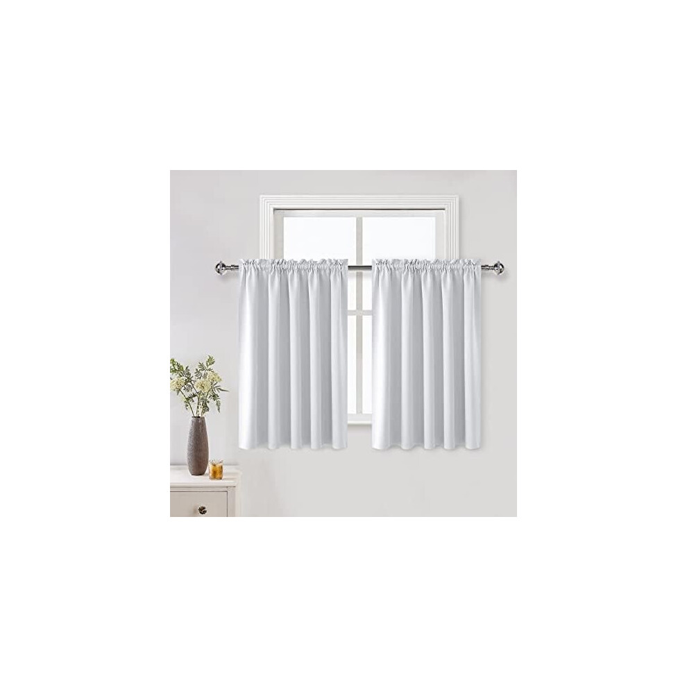 White Room Darkening Curtains for Kitchen/Bedroom, 60 x 36 inches Long - Energy Saving Window Drapes for Nursery with Rod Pocket, Set of 2 Panels