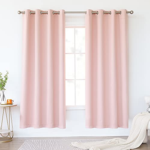 Blush Pink Curtains 63 Inch Length for Bedroom 2 Panels Set Blackout Drapes Boho Grommet Thermal Light Blocking Darkening Pastel Pretty Curtains for Living Room Window Girls Nursery Teen,63 in Long
