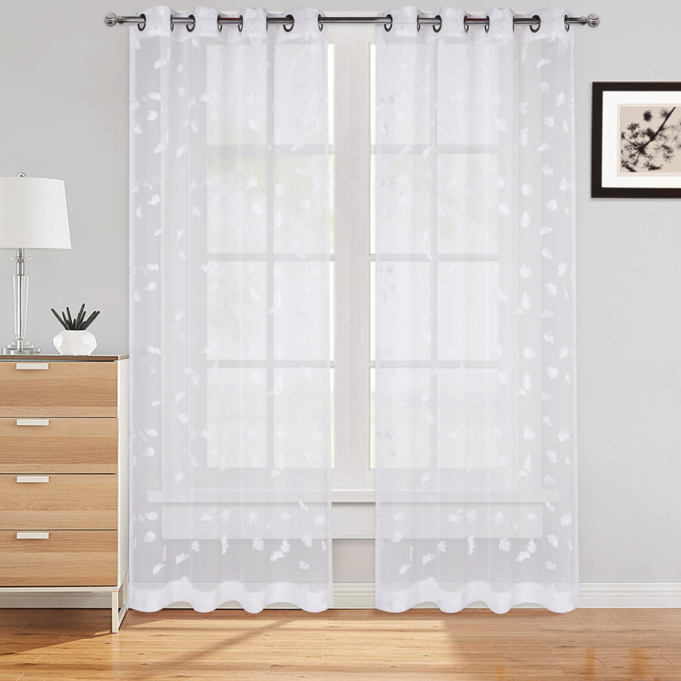 Haperlare 52"W x 95"L Sheer Curtains with Elegant Floral Embroidery, Voile Grommet Drapes for Bedroom or Nursery, White, 2 Panels