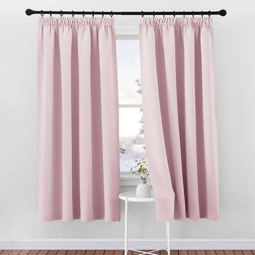PONY DANCE Girls Pink Bedroom Curtains, Thermal Insulated Room Darkening Curtains with Eyelet, Short Drapes for Nursery/Kids Bedroom, 2 Panels, W46 X