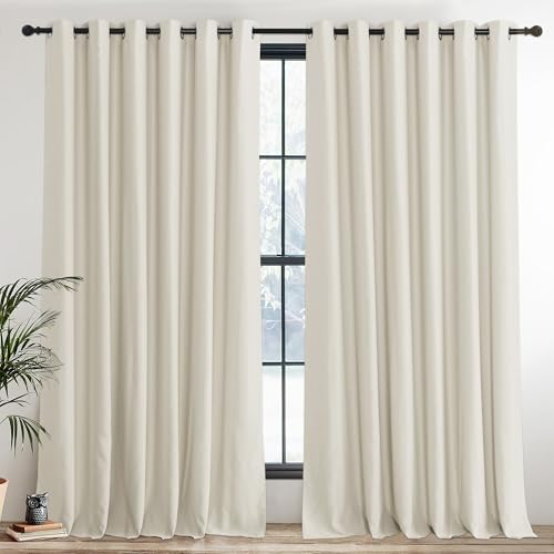 PONY DANCE Thermal Insulated Curtains for Living Room - Eyelet Balance Temperature Curtains Super Soft Bedroom Drapes for Nursery/Children/Kids, 66 x 90 Inches, Beige, 2 Panels