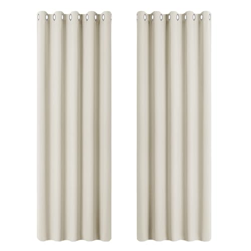 PONY DANCE Thermal Insulated Curtains for Living Room - Eyelet Balance Temperature Curtains Super Soft Bedroom Drapes for Nursery/Children/Kids, 66 x 72 Inches, Beige, 2 Panels