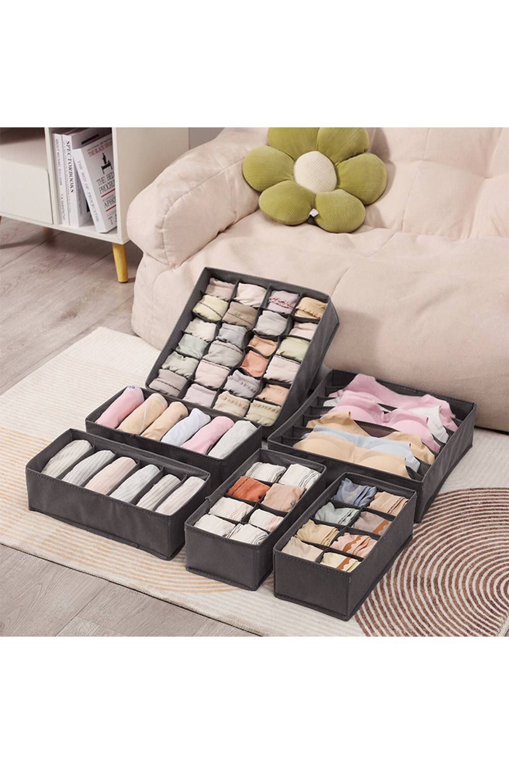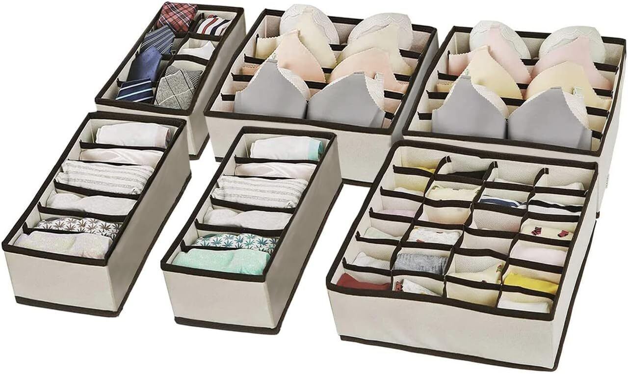Evance Underwear Drawer Organiser Set of 6, Folding Draw Dividers Storage Bins