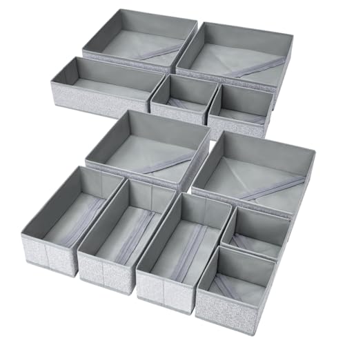 Lifewit 12 Pack Drawer Organiser, Collapisble Fabric Chest of Draw Dividers for Closet, Dresser, Nursery, Bedroom, Foldable Cube Boxes for Clothes, Pants, Underwear, Sock, Bras Organization, Grey
