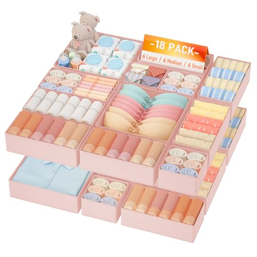 Homsorout Drawer Organisers Foldable Box - 18 Pack Fabric Drawer Dividers Wardrobe Storage Organiser Draw Cubes for Clothes, Socks, Underwear, Ties, Chest - Pink