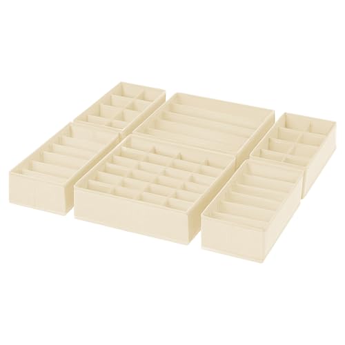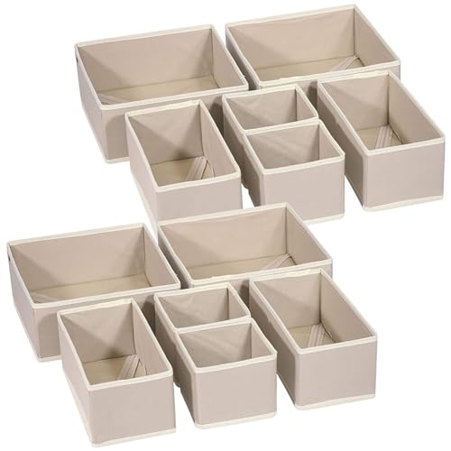 Homsorout 12 Pack Drawer Organisers Foldable Box - Fabric Drawer Dividers Wardrobe Storage Organiser Draw Cubes for Bras, Socks, Underwear, Ties, Chest, Bedroom, Beige