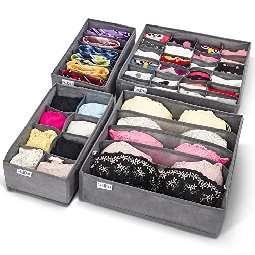 Craxter Underwear Drawer Organiser Divider – Set of Fabric Drawer Dividers for Clothes, Foldable Wardrobe Draw Organizer for Baby clothes, Socks, Bras, Scarf, Ties, Belts and Knickers (Set of 4 Grey)