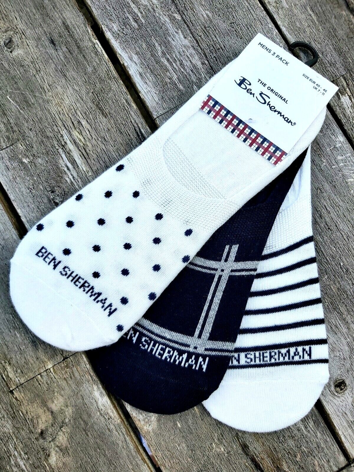 3 PAIRS : Genuine BEN SHERMAN LINERS Navy / White Trainer 7-11 40-45 draw