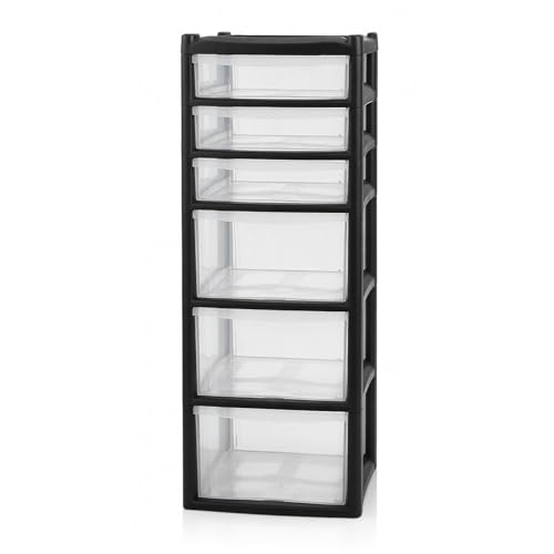 CrazyGadget® Extra Large 6 Drawer Tower Storage Draw Plastic School Office Home Organiser Unit Set Black - Made In UK
