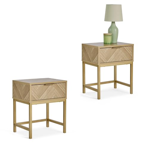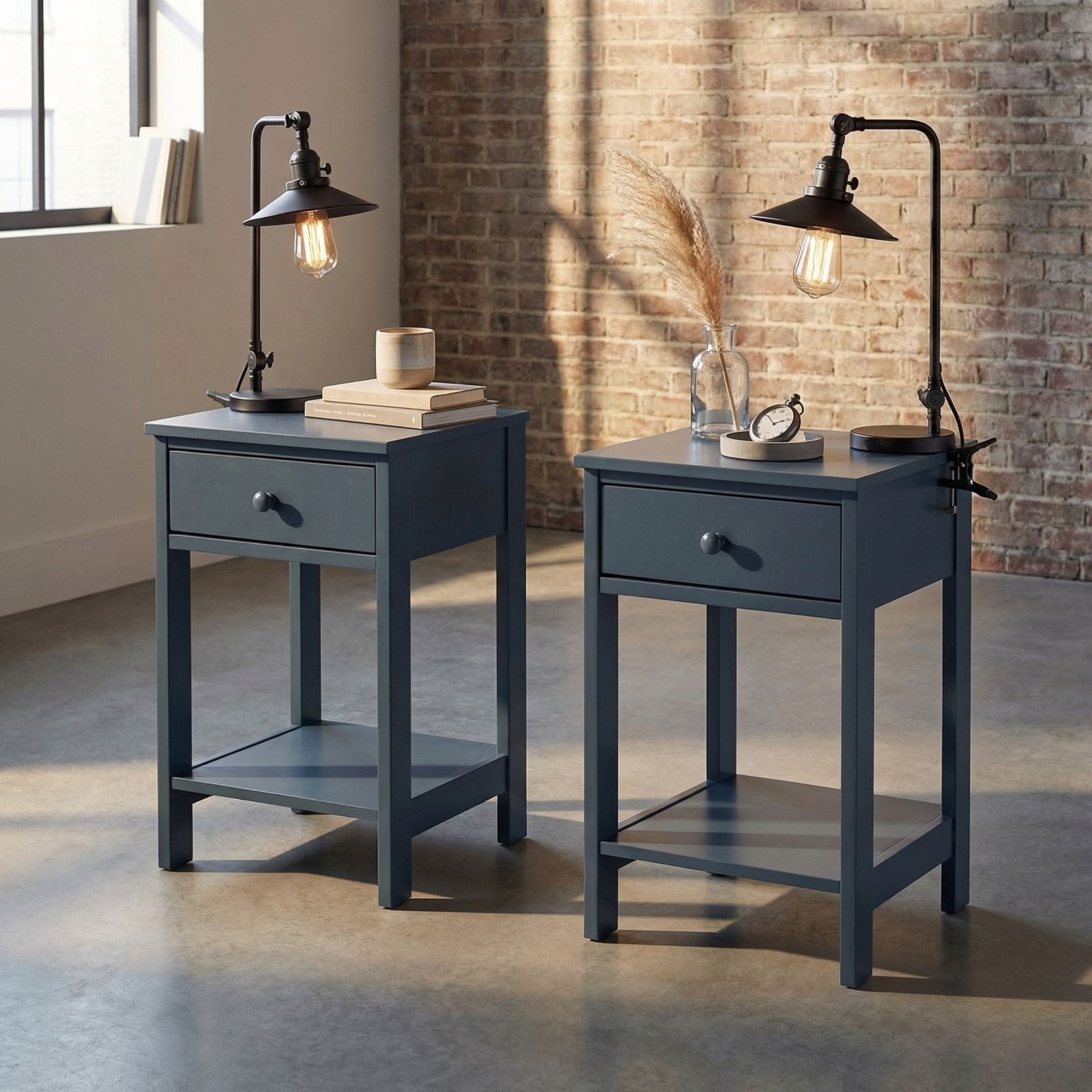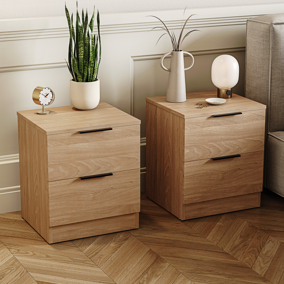 Gecheer Old Wood 2-Drawer Bedside Cabinets Set - Engineered Wood, 2 Units, 60kg Capacity Model858800
