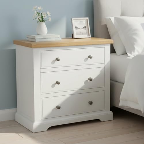 Hallowood Furniture Waverly Oak 3 Drawer Wooden Bedside Table, Solid Oak Bedside Cabinet, Small Chest of Drawers, Pre-Assembled Side Table with Storage for Bedroom, Hallway or Living Room