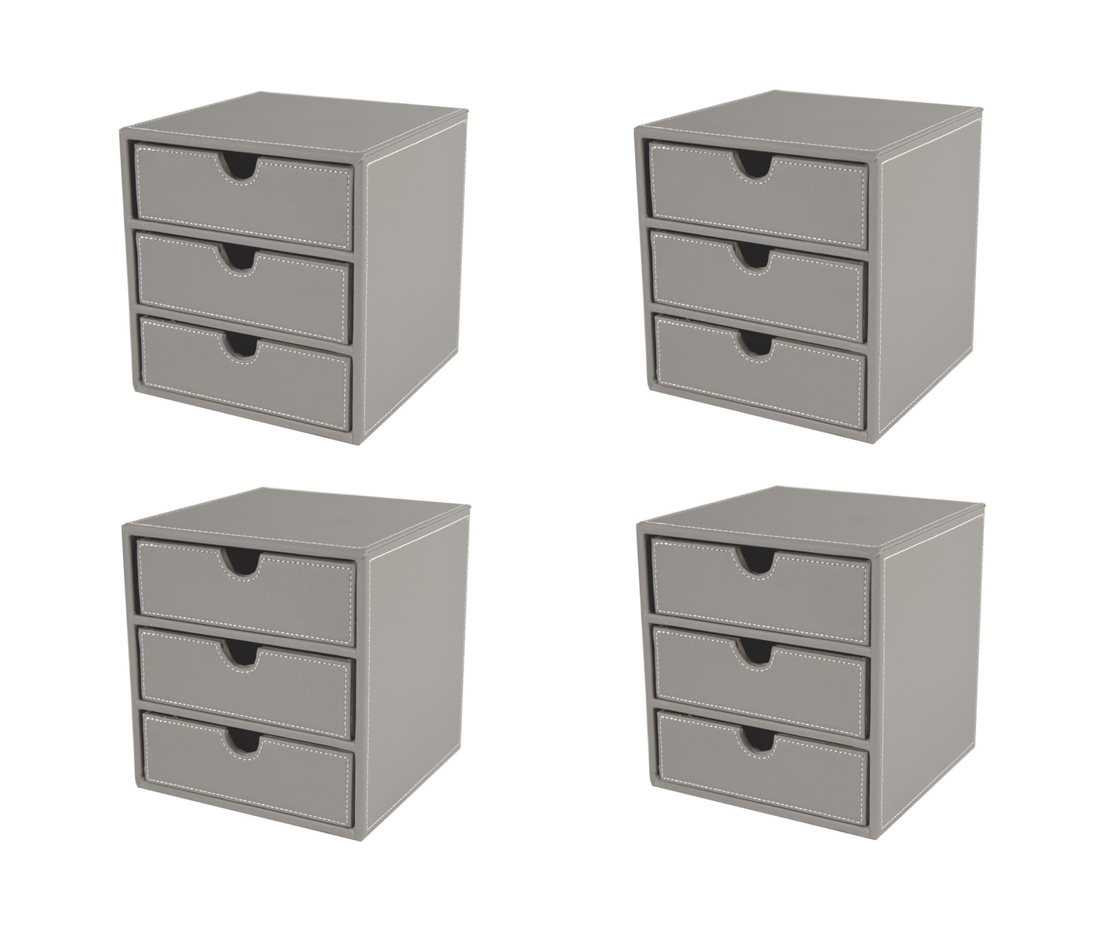 OSCO Grey Faux Leather 3 Drawer Chest | 4 Pack | Small Item Storage | Stackable