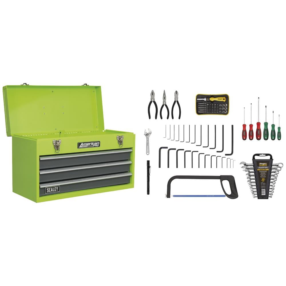Sealey American Pro 3 Drawer Tool Chest + 93 Piece Tool Kit Green