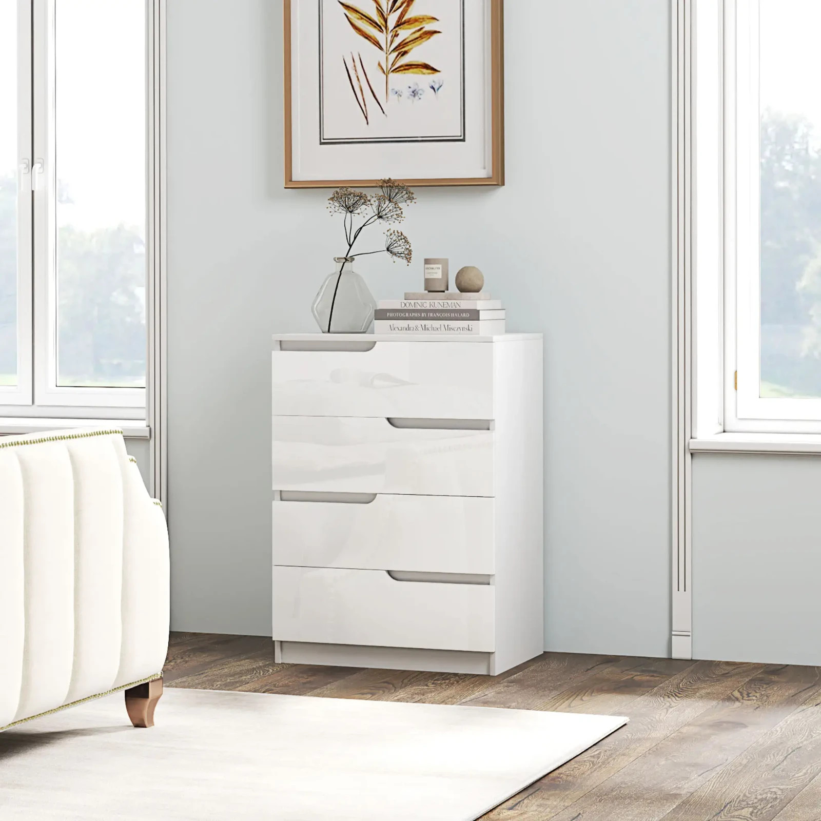 Chest of Drawers White 4 Drawer Chest Drawers Bedroom Storage Art Deco Gold Legs