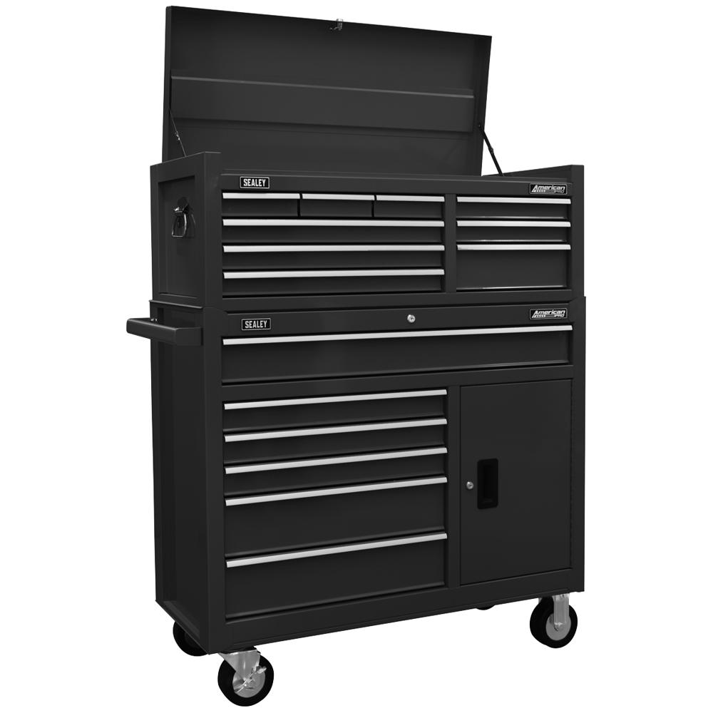 Sealey 15 Drawer Top Chest and Tool Roller Cabinet Combination Black