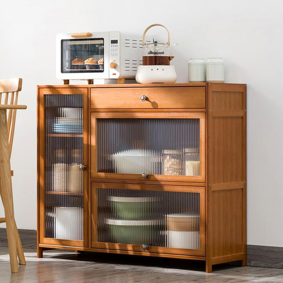Bamboo Kitchen Storage Cabinet with Drawer, Multifunctional Microwave Oven Rack for Dining Room