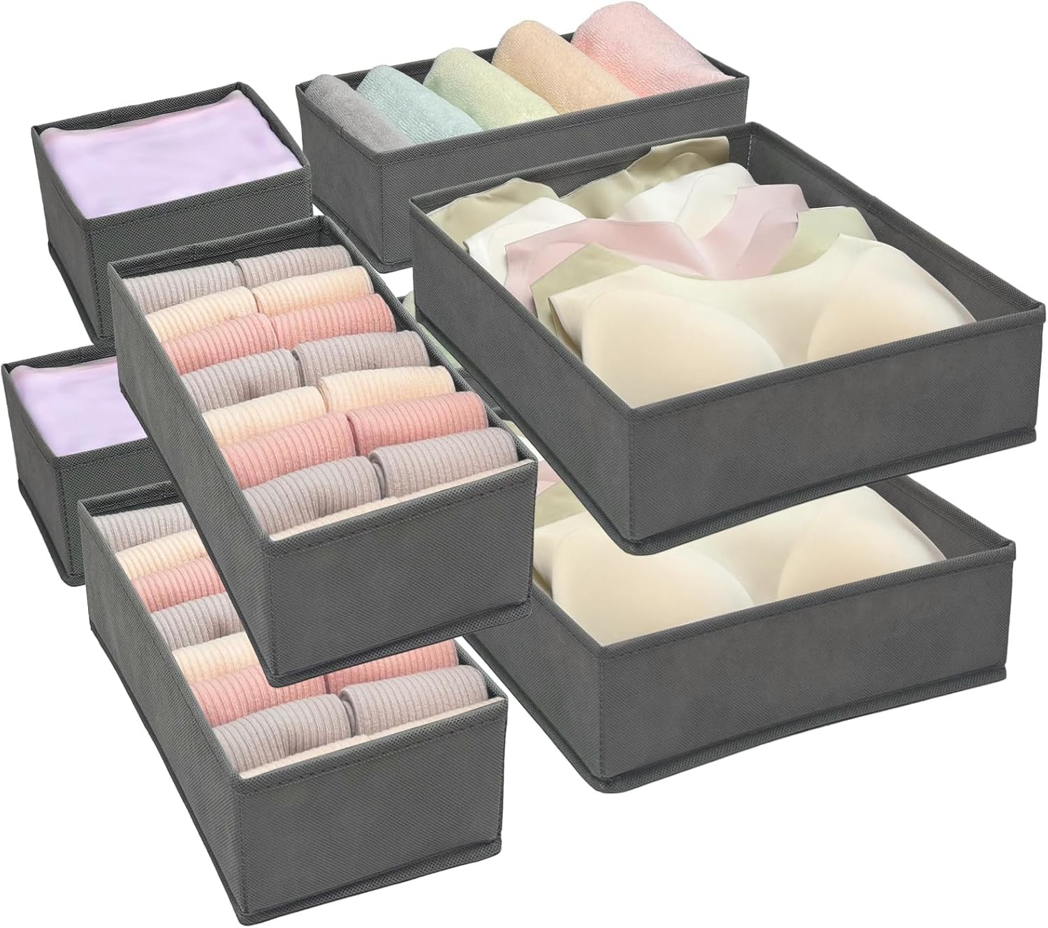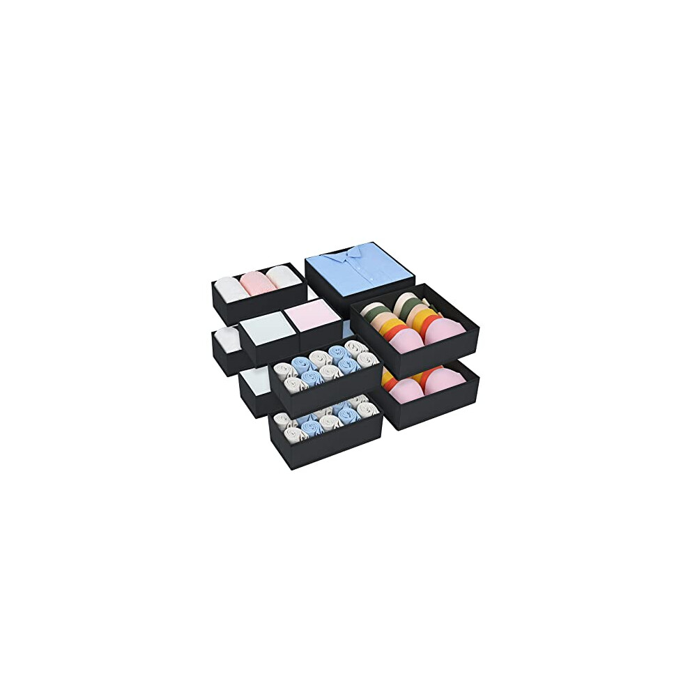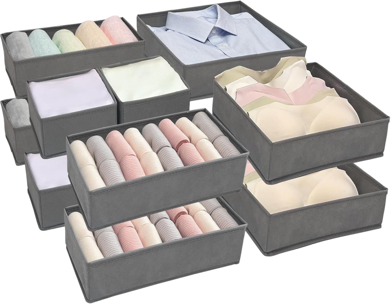 8Pack Drawer Organiser Foldable, Grey Fabric Drawer Dividers, Wardrobe Storage