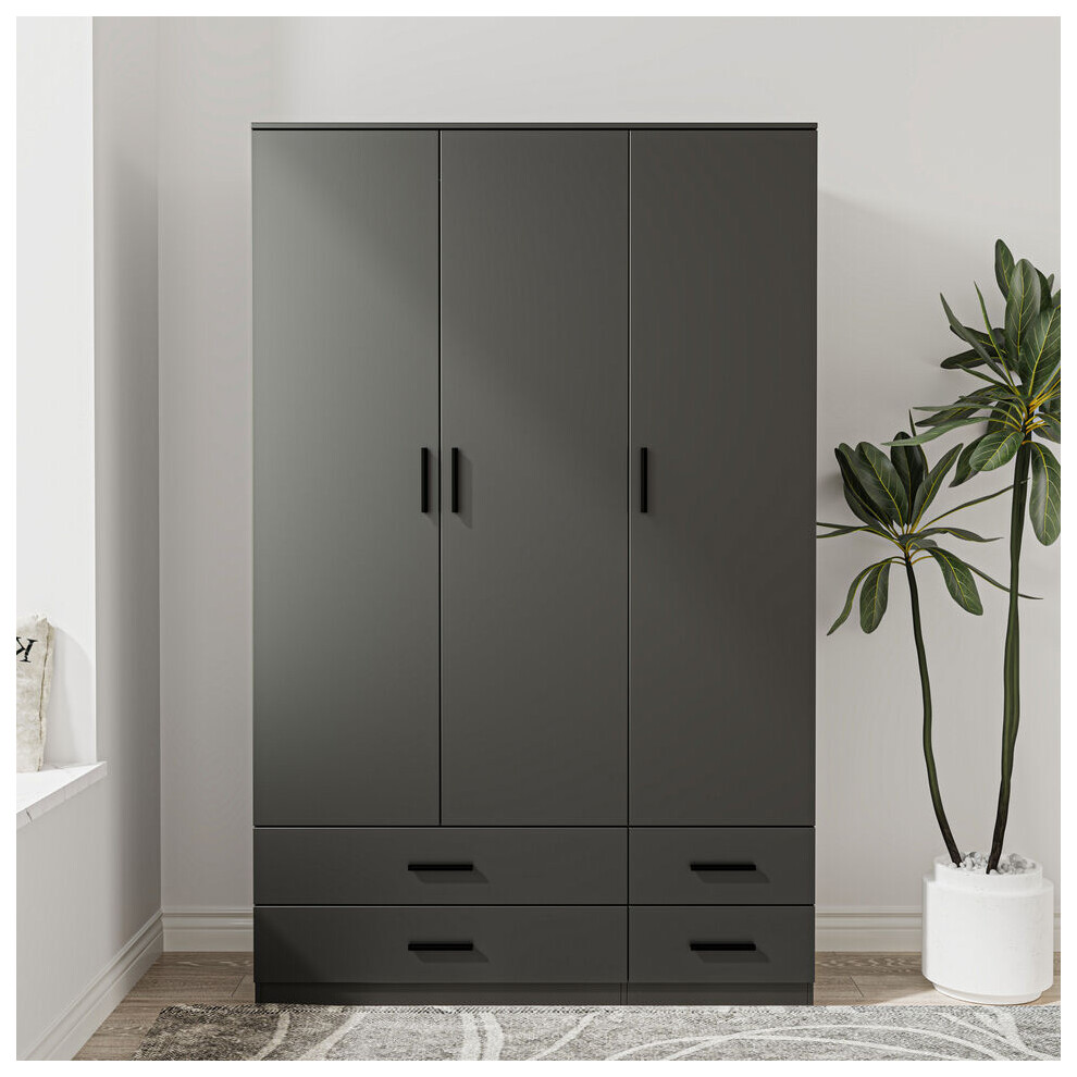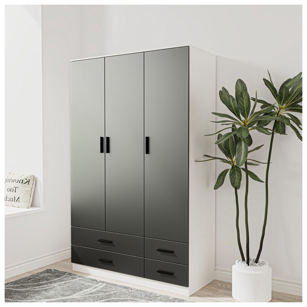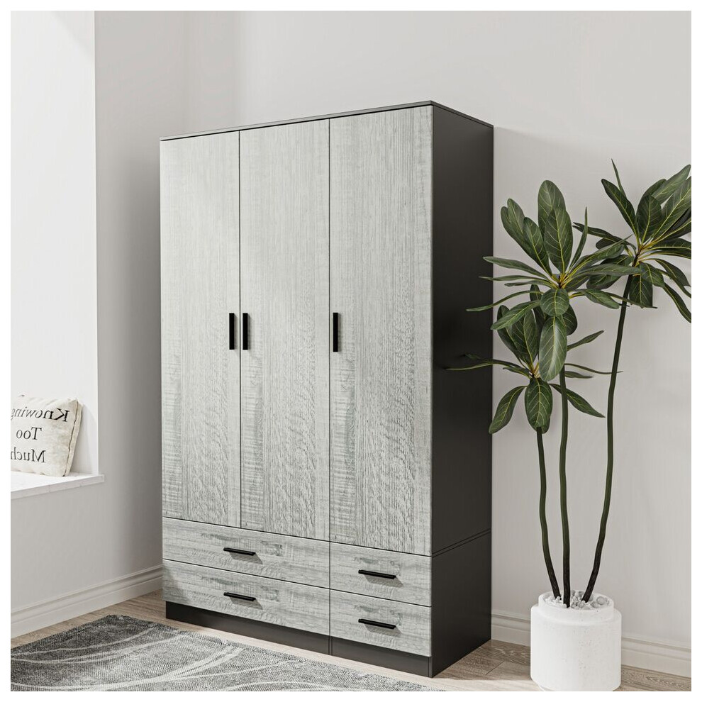 (Black & Ash Grey) 3 Door 4 Drawer Wardrobe Storage Shelf Hanging Bedroom Modern Furniture