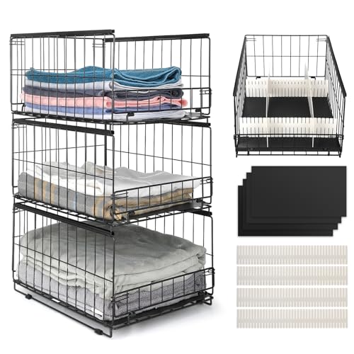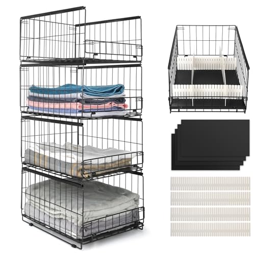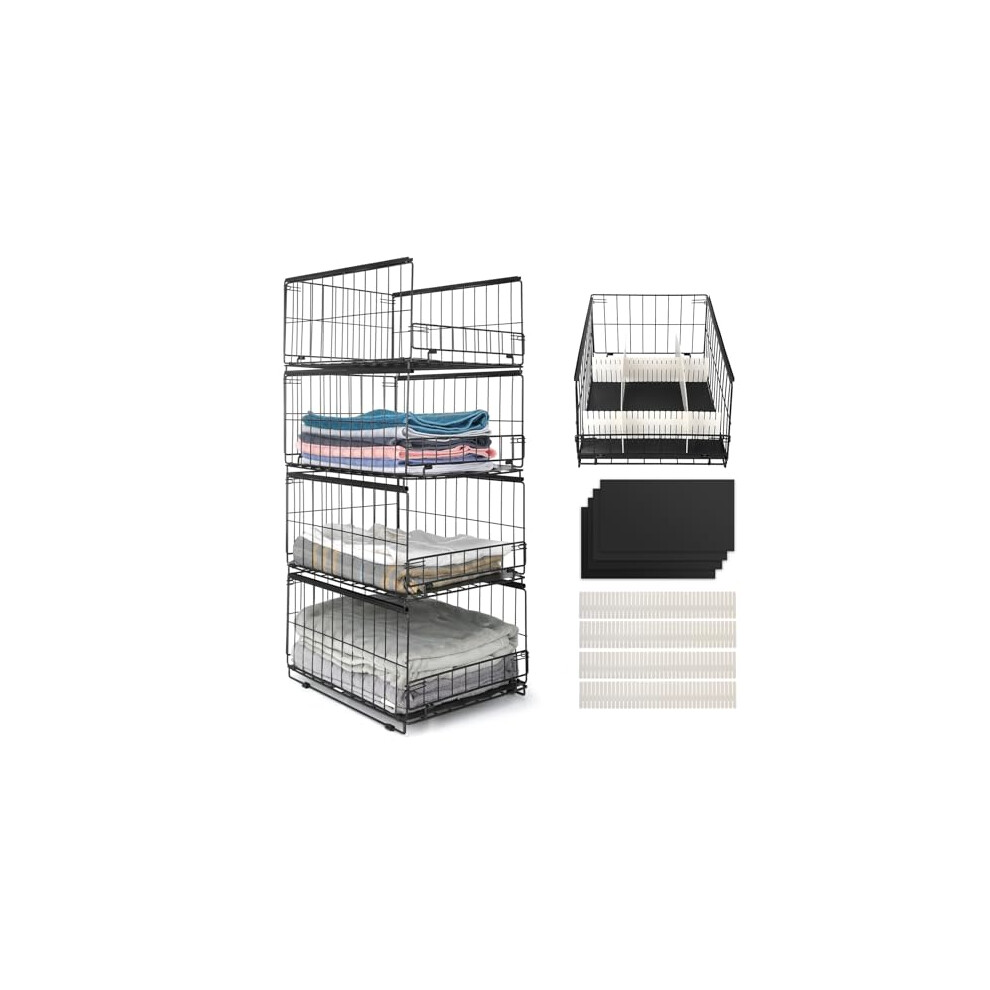 Stackable Closet Shelves - Drawer Basket, Closet Storage, Wardrobe Storage Box Organiser, Stackable Storage Cabinet Organiser, Adjustable Shoe Racks, Decorative Wardrobe Shelves