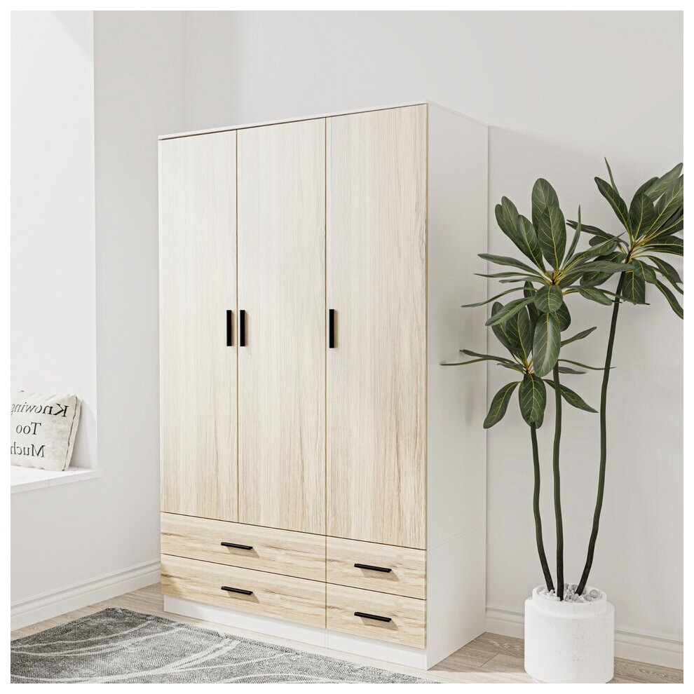 (White & Oak) 3 Door 4 Drawer Wardrobe Storage Shelf Hanging Bedroom Modern Furniture