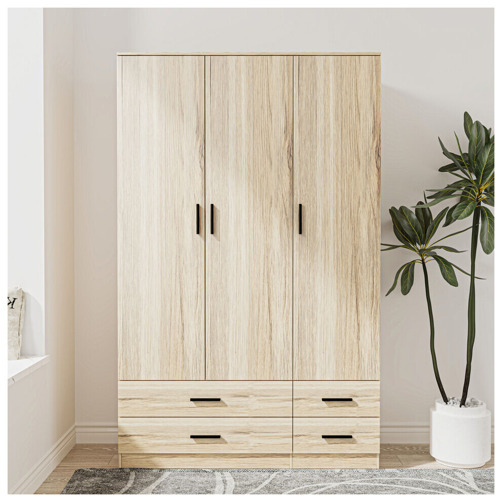 (Oak) 3 Door 4 Drawer Wardrobe Storage Shelf Hanging Bedroom Modern Furniture