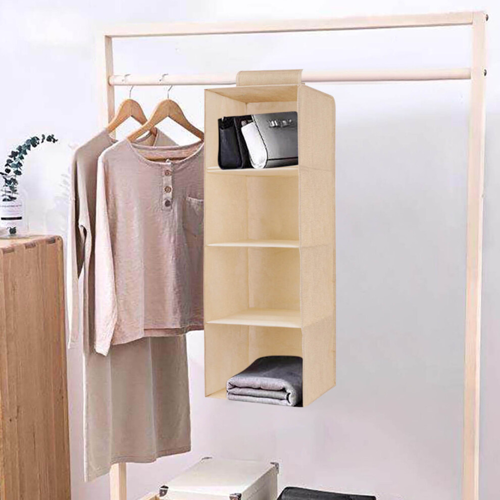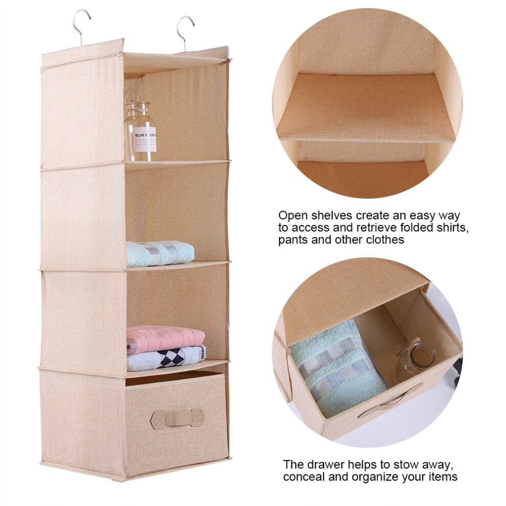 Beige Hanging Closet Organizer 4 Shelves with Drawer - Wardrobe Storage