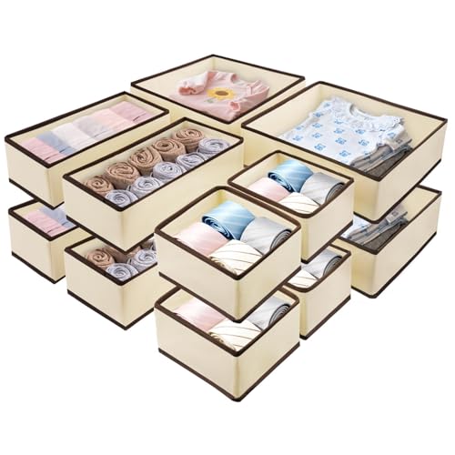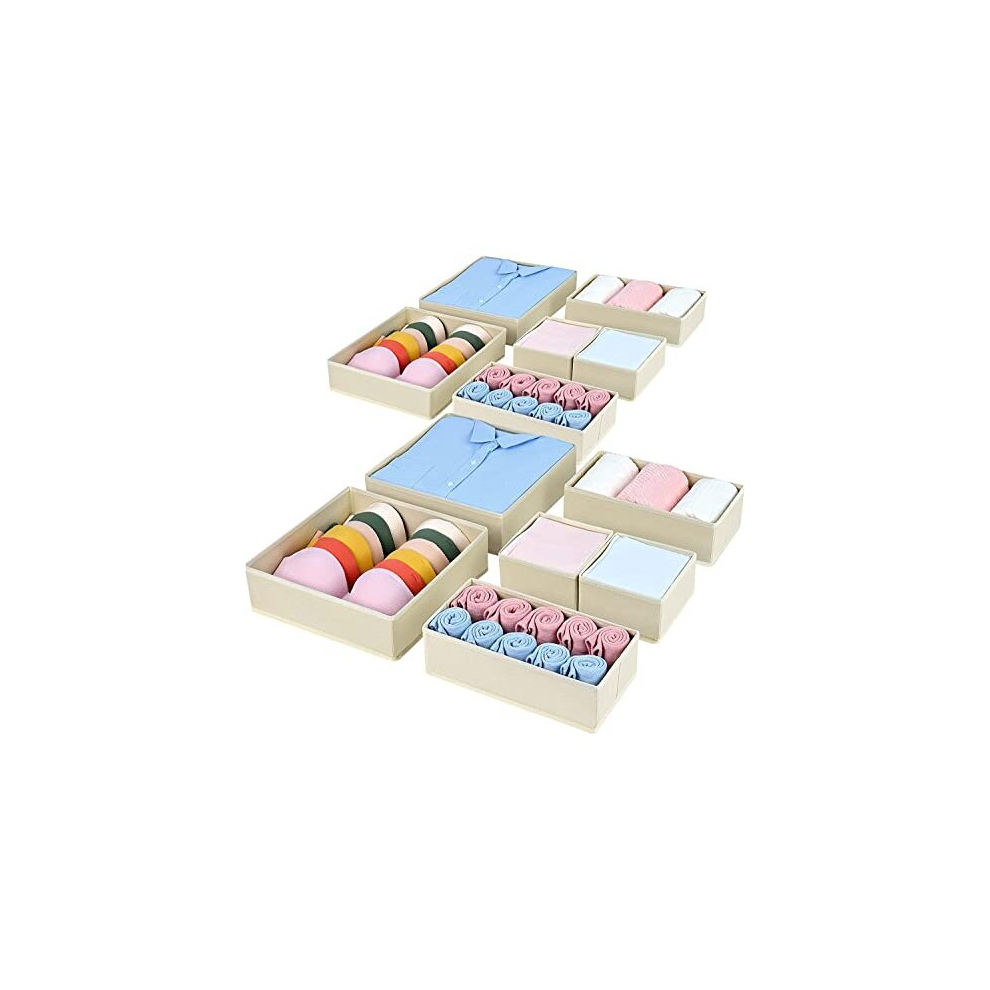 Homsorout 12 Pack Drawer Organisers Foldable Box - Fabric Drawer Dividers Wardrobe Storage Organiser Draw Cubes for Bras, Socks, Underwear, Ties, Chest, Bedroom, Beige