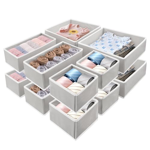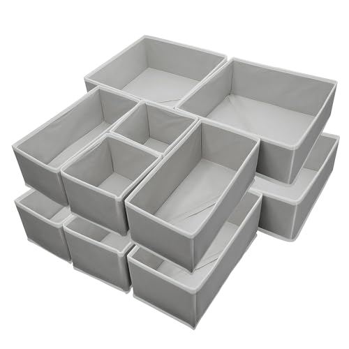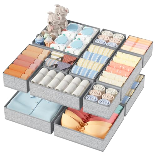 Foeska Drawer Organiser,Wardrobe Storage Organiser,Drawer Dividers for clothes,Foldable Drawer Organiser for Clothes,Underwear Storage Solution,for Bedroom,Wardrobe(12 pcs Grey)