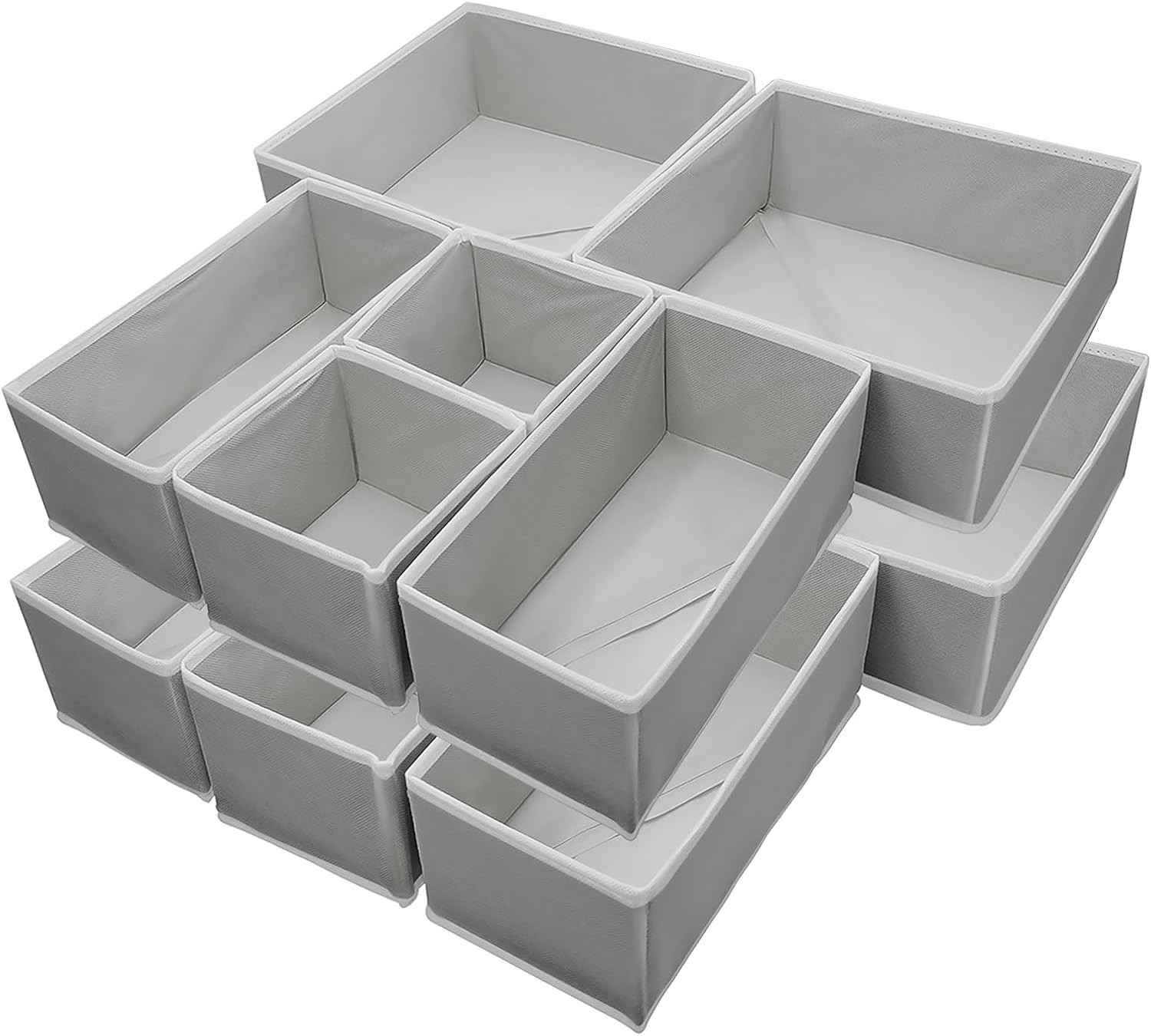 12Pack Drawer Organiser Foldable, Grey Fabric Drawer Dividers, Wardrobe Storage