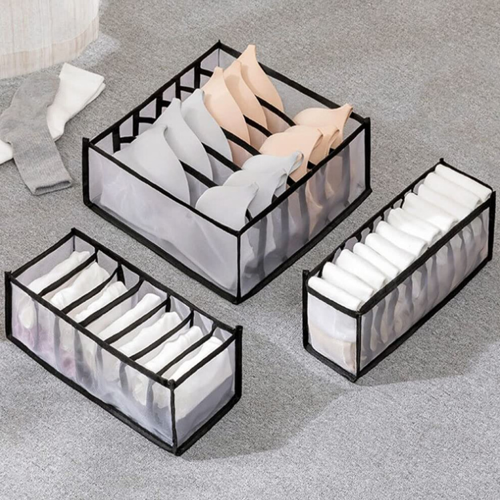 3 Pack Underwear Drawer Storage Box, Foldable Wardrobe Drawer Storage Box, with 6, 7, 11 Compartments, for Socks, Bras, Underwear and Tie Storage