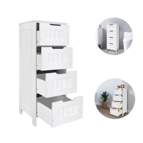 mcc direct Bathroom Floor Storage Cabinet, Bathroom Storage Unit with 4 Drawers, Bathroom Cabinet Freestanding for Living Room, Dining Room, Kitchen Toby (White)